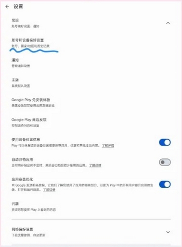 打开play商店-点击头像-设置-常规-账号和设备偏好设置-查看国家/地区和个人资料栏是否有韩国,如果有,账号就成功设置了韩区IP了